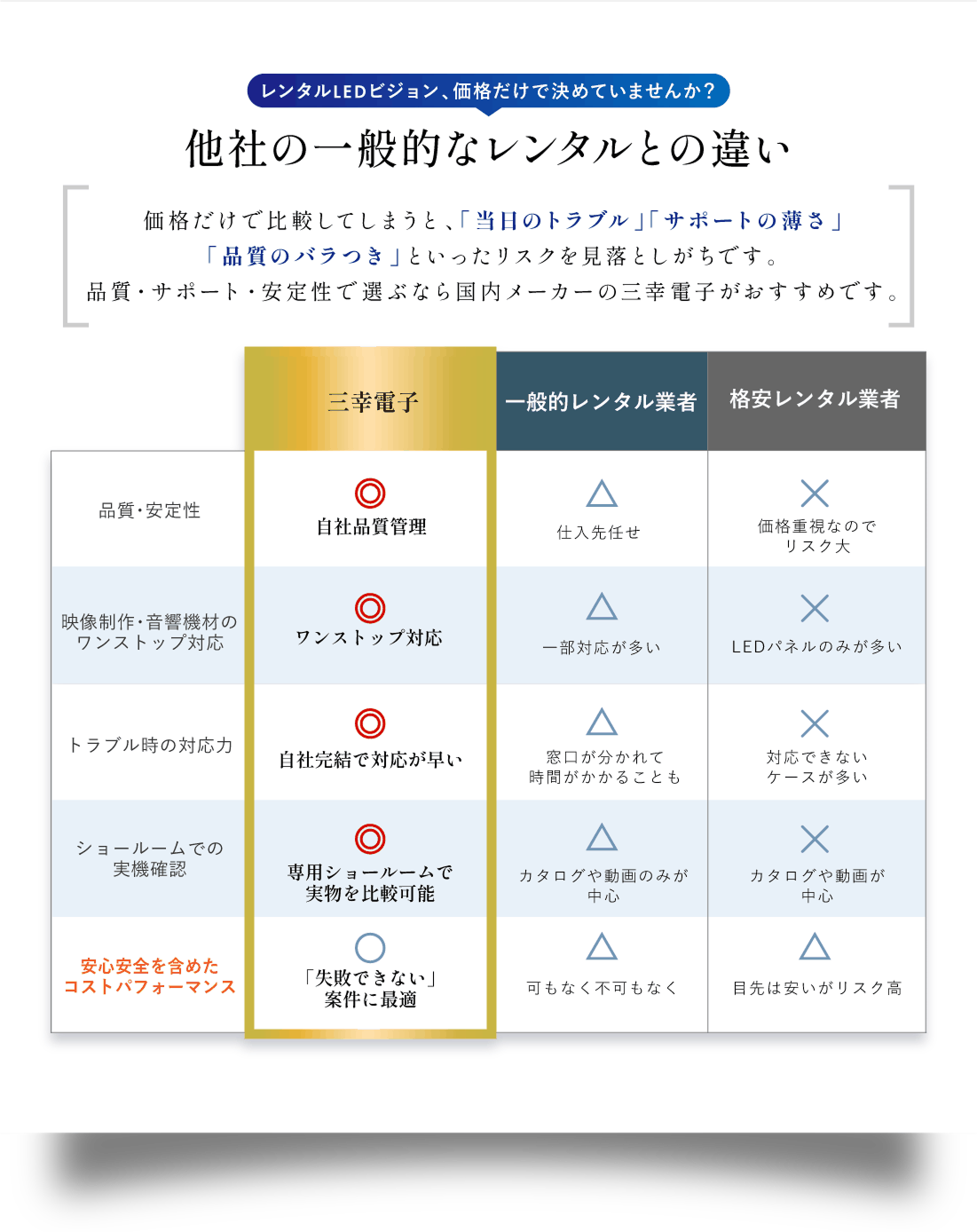 展示会や大型イベントなど、絶対に外したくない案件の前に、失敗しない選び方ができます。
